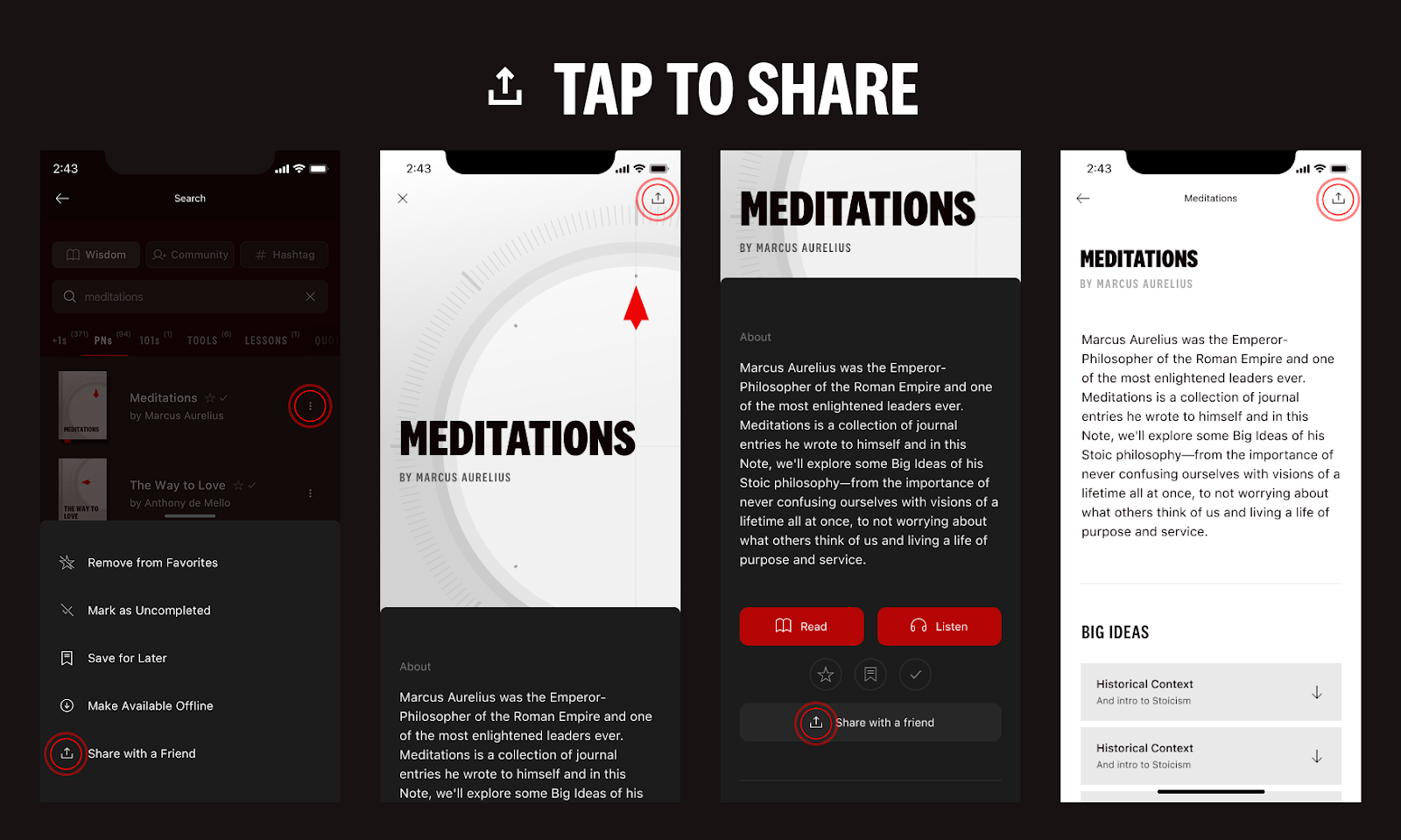 P.S. Who is one person you think might benefit from reading or listening to a Philosopher’s Note? Open up the app, search for one of your favorites, and hit that share button. 🙌